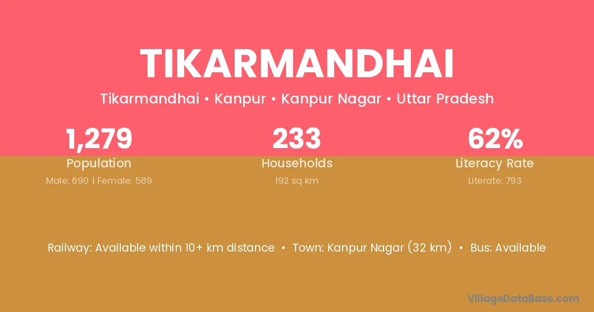Kanpur Nagar (32 km) is the nearest town to Tikarmandhai village for major economic activities and is located approximately 32 km away.