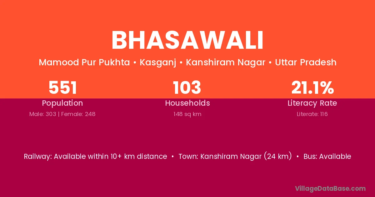Bhasawali village has a total population of 551 people, of which 303 are males and 248 are females.
