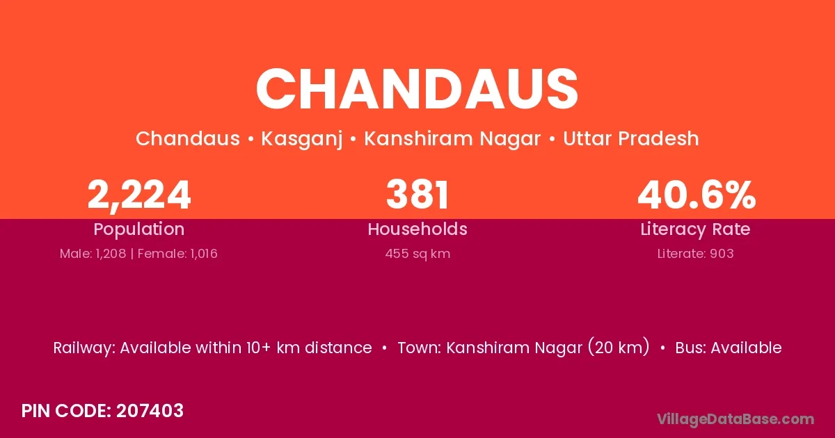 Kanshiram Nagar (20 km) is the nearest town to Chandaus village for major economic activities and is located approximately 20 km away.