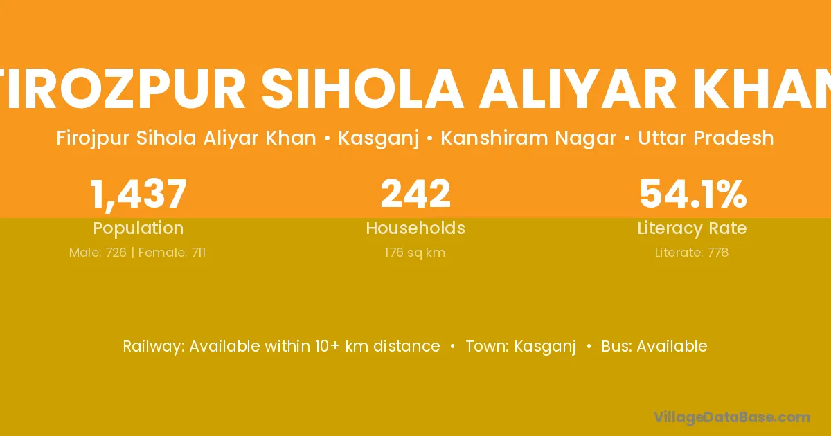 Firozpur Sihola Aliyar Khan village has a total population of 1,437 people, of which 726 are males and 711 are females.