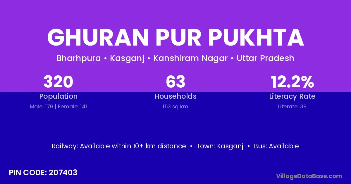 Kasganj is the nearest town to Ghuran Pur Pukhta village for major economic activities