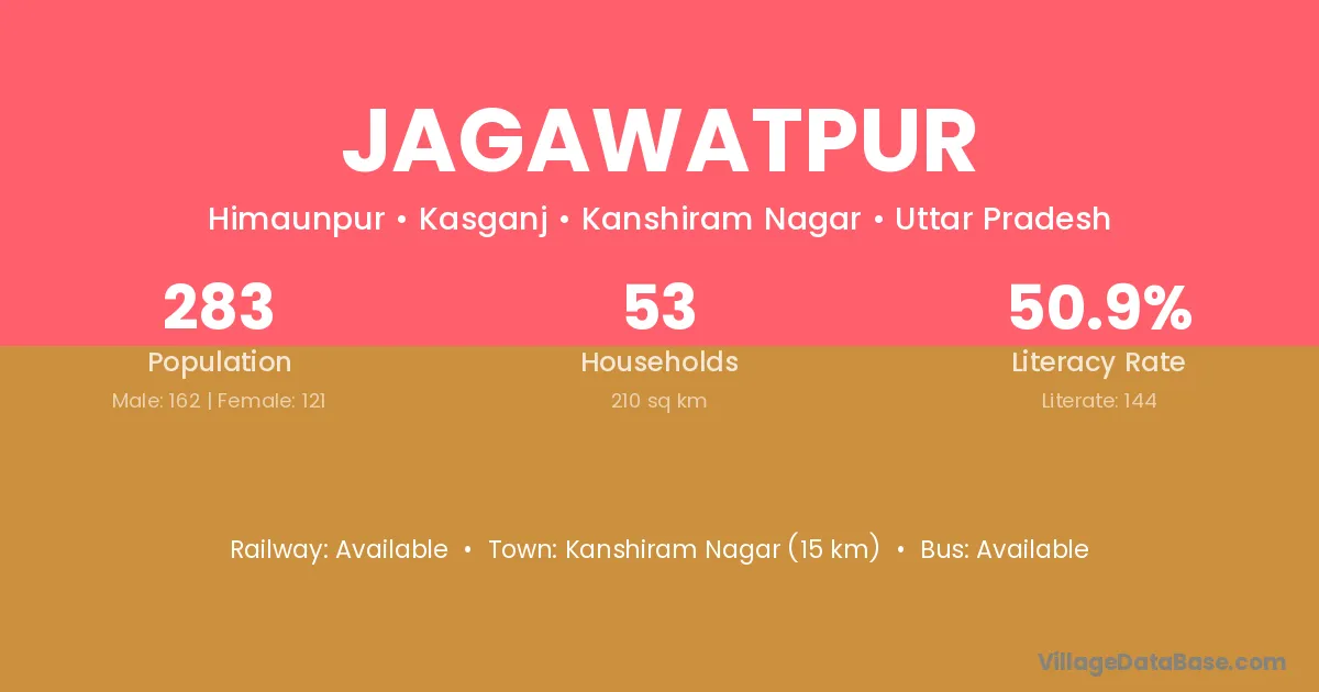 Kanshiram Nagar (15 km) is the nearest town to Jagawatpur village for major economic activities and is located approximately 15 km away.