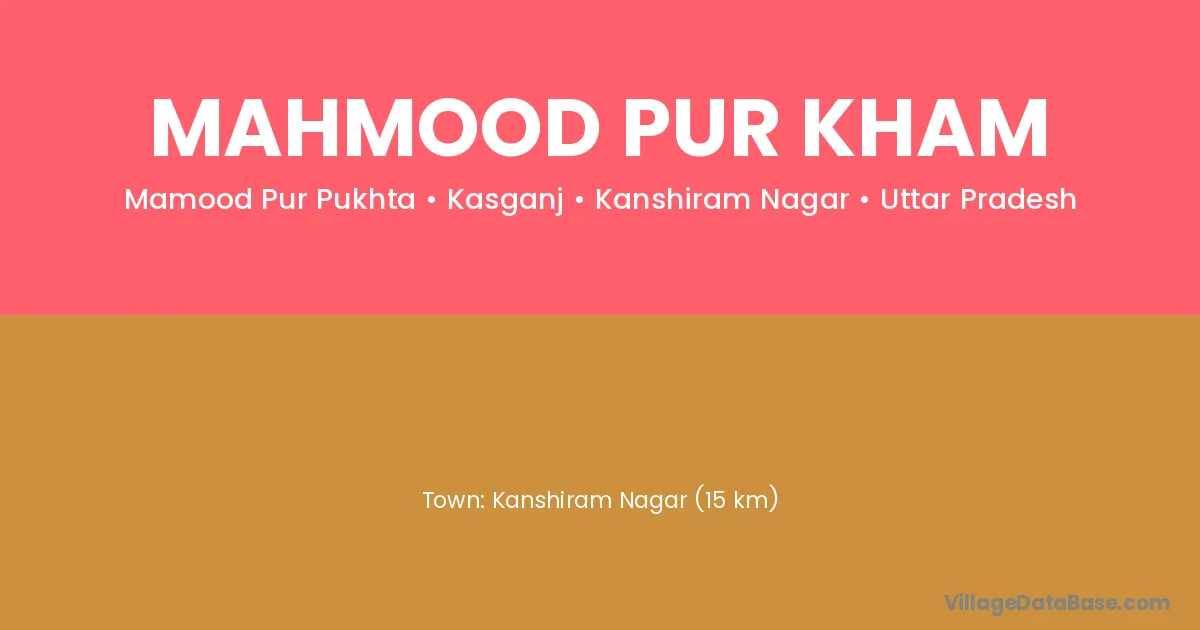 Kanshiram Nagar (15 km) is the nearest town to Mahmood Pur Kham village for major economic activities and is located approximately 15 km away.