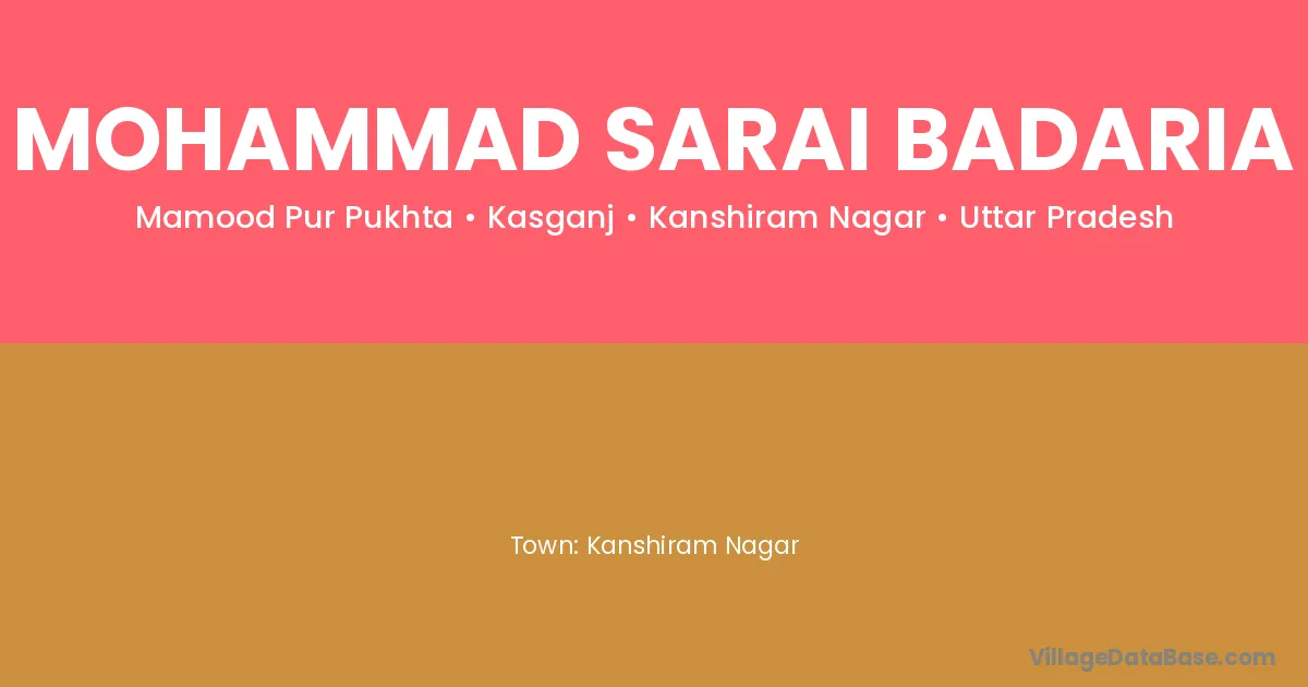 Mohammad Sarai Badaria village is located in the Kasganj Tehsil of the Kanshiram Nagar district in Uttar Pradesh .
