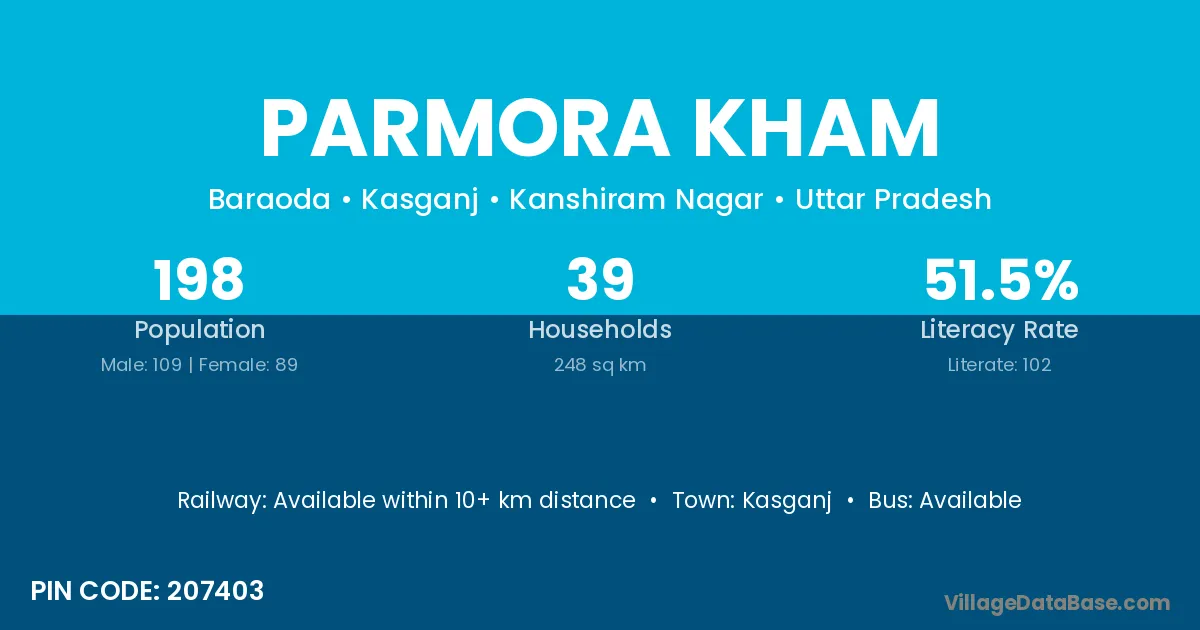 Kasganj is the nearest town to Parmora Kham village for major economic activities