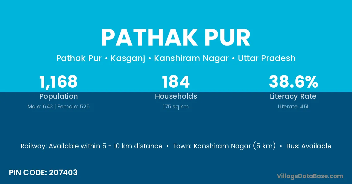 Kanshiram Nagar (5 km) is the nearest town to Pathak Pur village for major economic activities and is located approximately 5 km away.