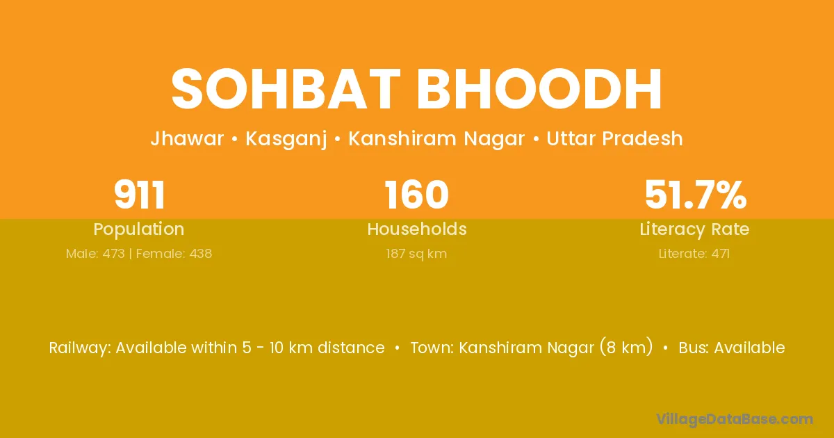 Kanshiram Nagar (8 km) is the nearest town to Sohbat Bhoodh village for major economic activities and is located approximately 8 km away.