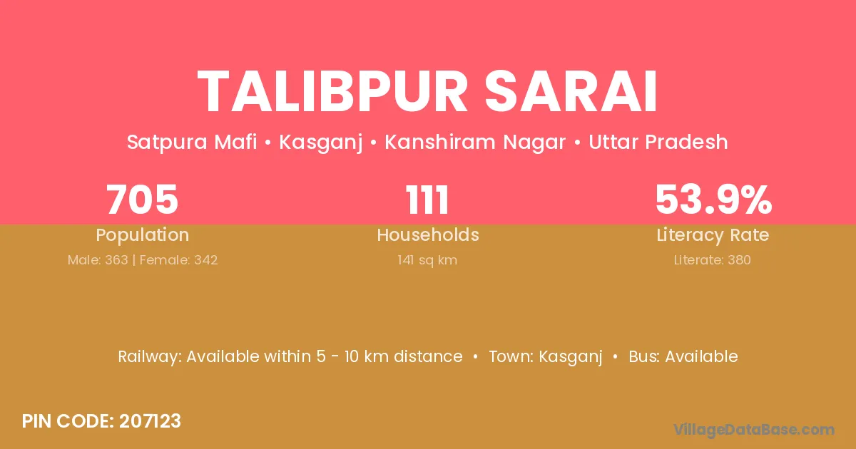 Talibpur Sarai village has a total population of 705 people, of which 363 are males and 342 are females.