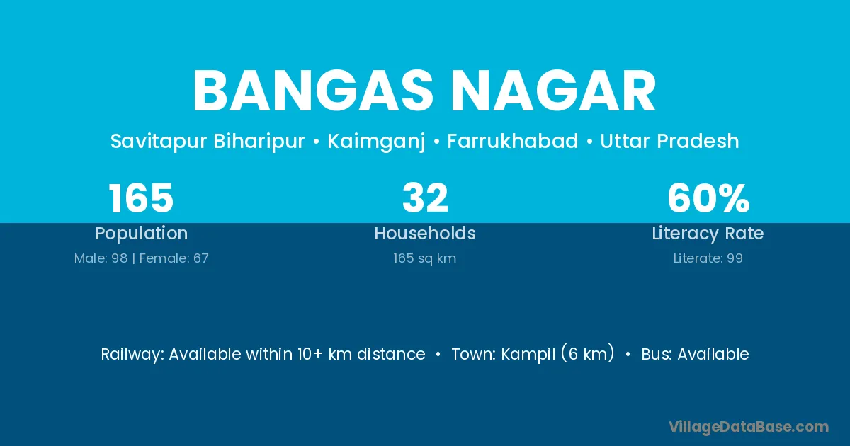 Kanshiram Nagar (45 km) is the nearest town to Bangas Nagar village for major economic activities and is located approximately 45 km away.