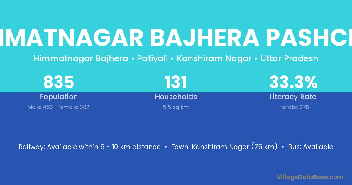 Kanshiram Nagar (75 km) is the nearest town to Himmatnagar Bajhera Pashchim village for major economic activities and is located approximately 75 km away.