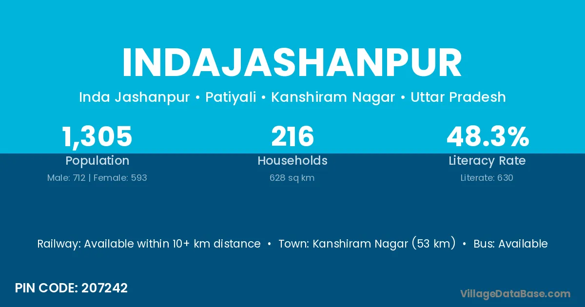 Kanshiram Nagar (53 km) is the nearest town to Indajashanpur village for major economic activities and is located approximately 53 km away.