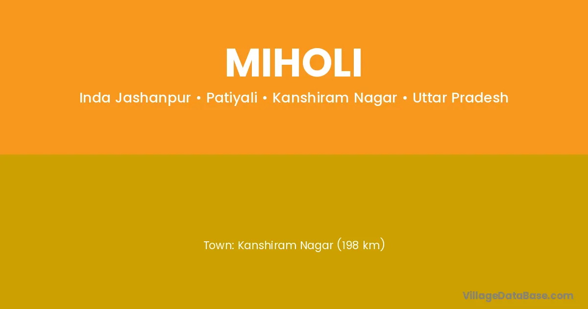 Kanshiram Nagar (198 km) is the nearest town to Miholi village for major economic activities and is located approximately 198 km away.