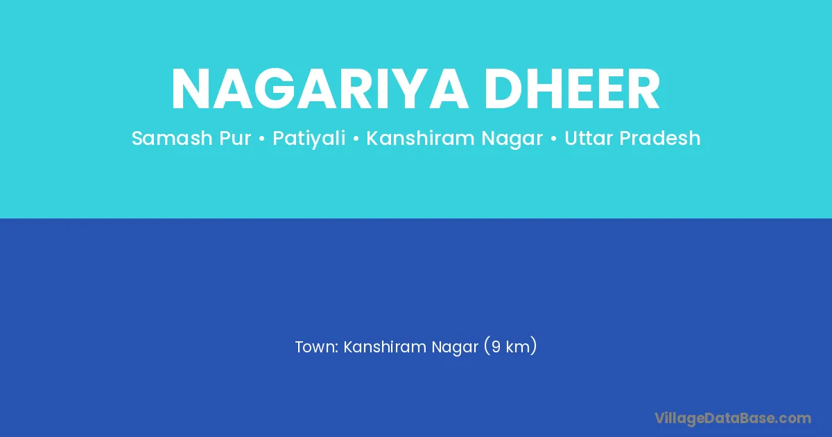 Kanshiram Nagar (9 km) is the nearest town to Nagariya Dheer village for major economic activities and is located approximately 9 km away.