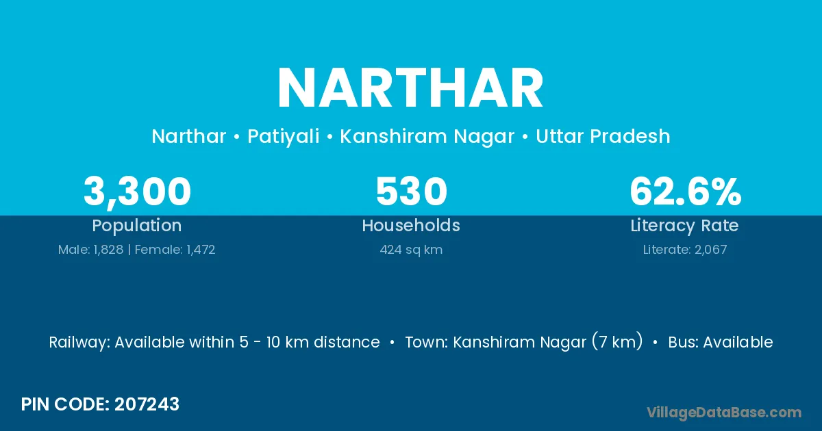 Kanshiram Nagar (7 km) is the nearest town to Narthar village for major economic activities and is located approximately 7 km away.