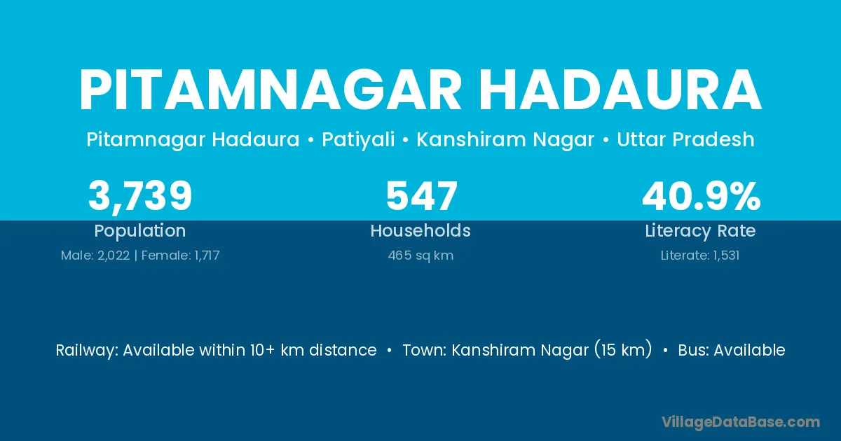Kanshiram Nagar (15 km) is the nearest town to Pitamnagar Hadaura village for major economic activities and is located approximately 15 km away.