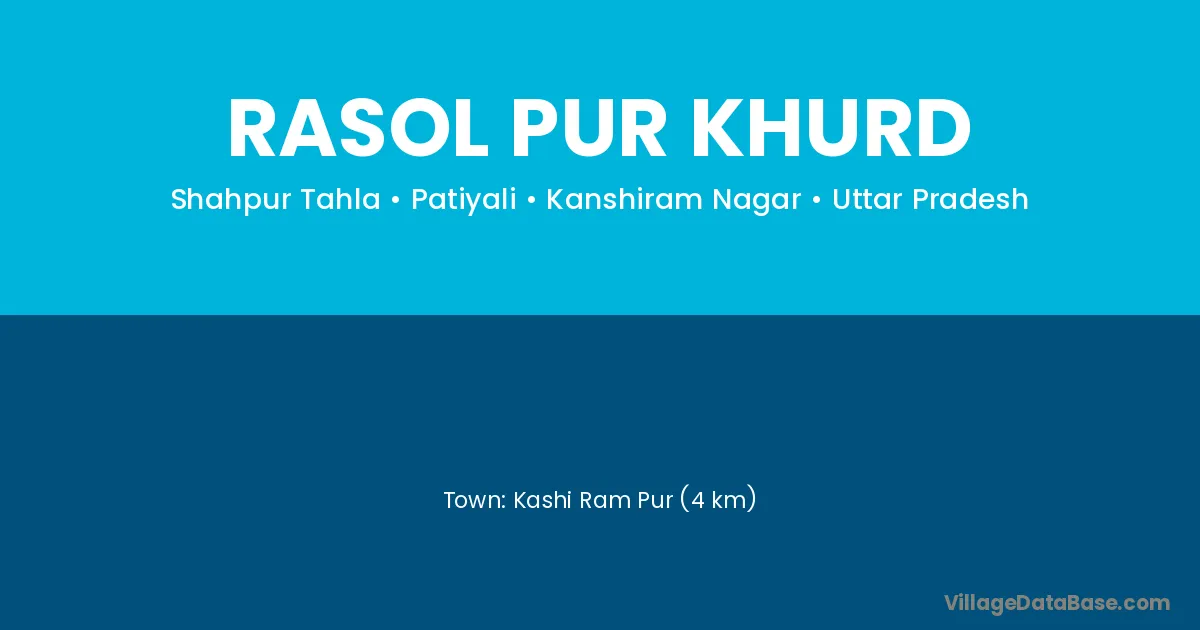 Kashi Ram Pur (4 km) is the nearest town to Rasol Pur Khurd village for major economic activities and is located approximately 4 km away.