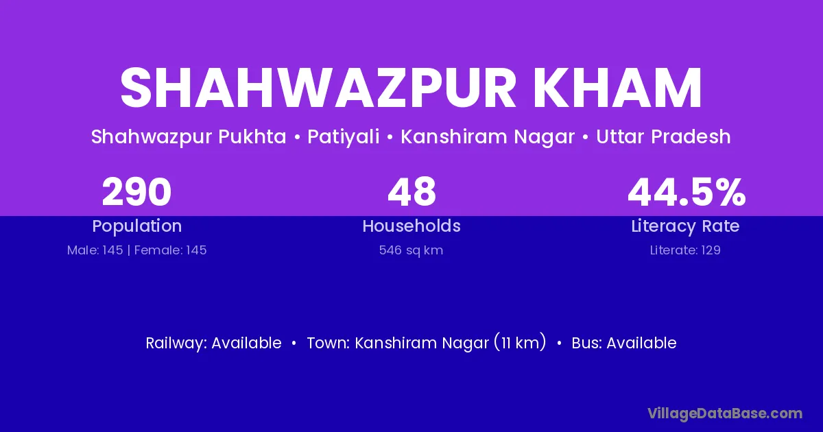 Shahwazpur Kham village has a total population of 290 people, of which 145 are males and 145 are females.