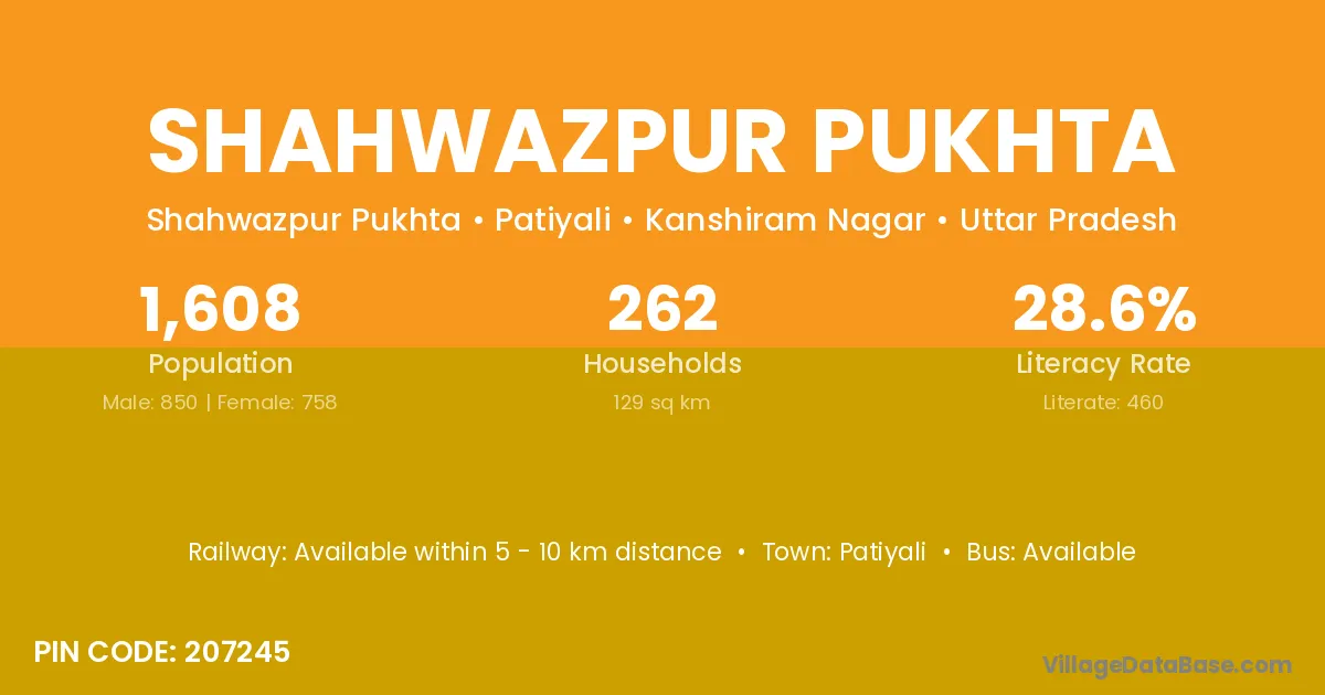 Shahwazpur Pukhta village has a total population of 1,608 people, of which 850 are males and 758 are females.