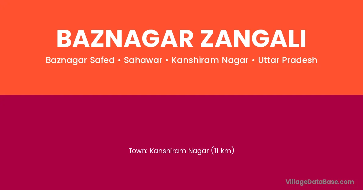 Kanshiram Nagar (11 km) is the nearest town to Baznagar Zangali village for major economic activities and is located approximately 11 km away.