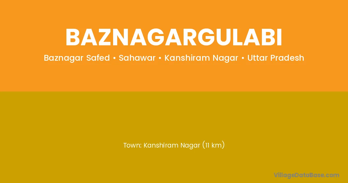 Kanshiram Nagar (11 km) is the nearest town to Baznagargulabi village for major economic activities and is located approximately 11 km away.