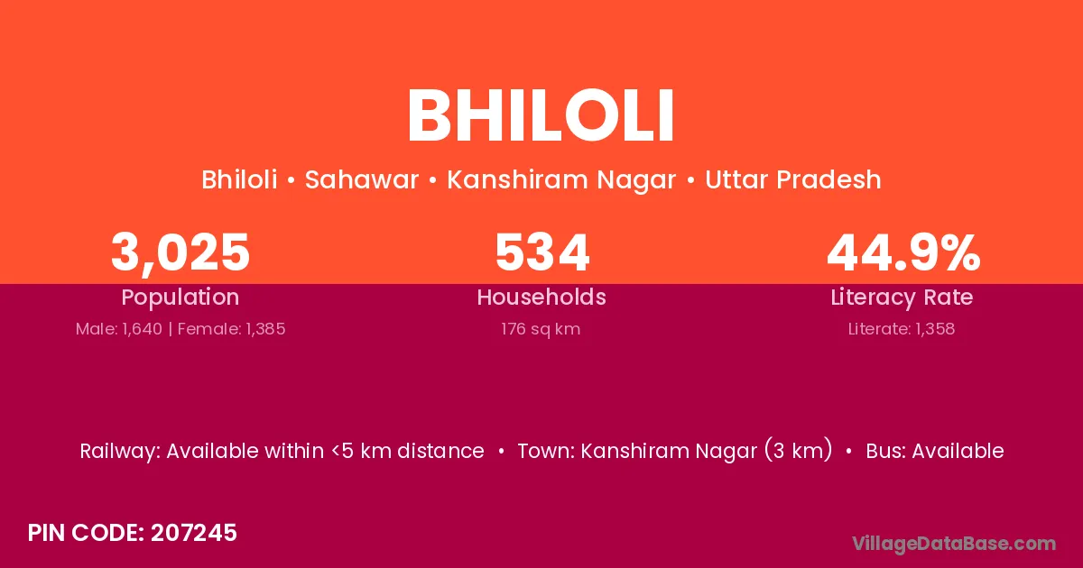 Kanshiram Nagar (3 km) is the nearest town to Bhiloli village for major economic activities and is located approximately 3 km away.