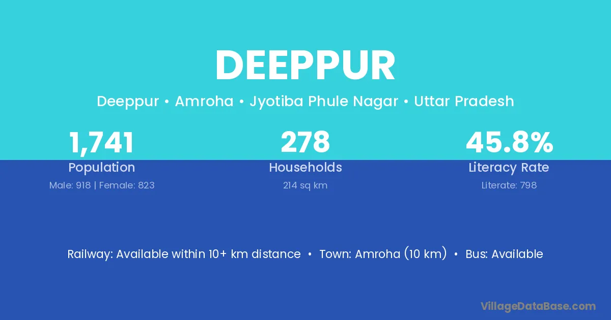 Kanshiram Nagar (8 km) is the nearest town to Deeppur village for major economic activities and is located approximately 8 km away.