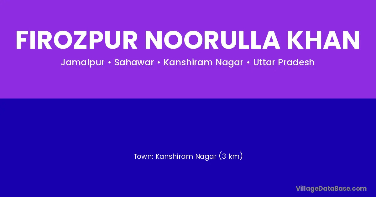 Kanshiram Nagar (3 km) is the nearest town to Firozpur Noorulla Khan village for major economic activities and is located approximately 3 km away.