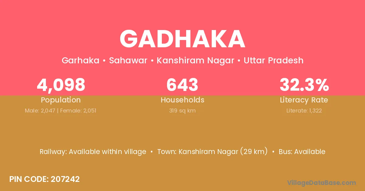 Gadhaka village is located in the Sahawar Tehsil of the Kanshiram Nagar district in Uttar Pradesh .