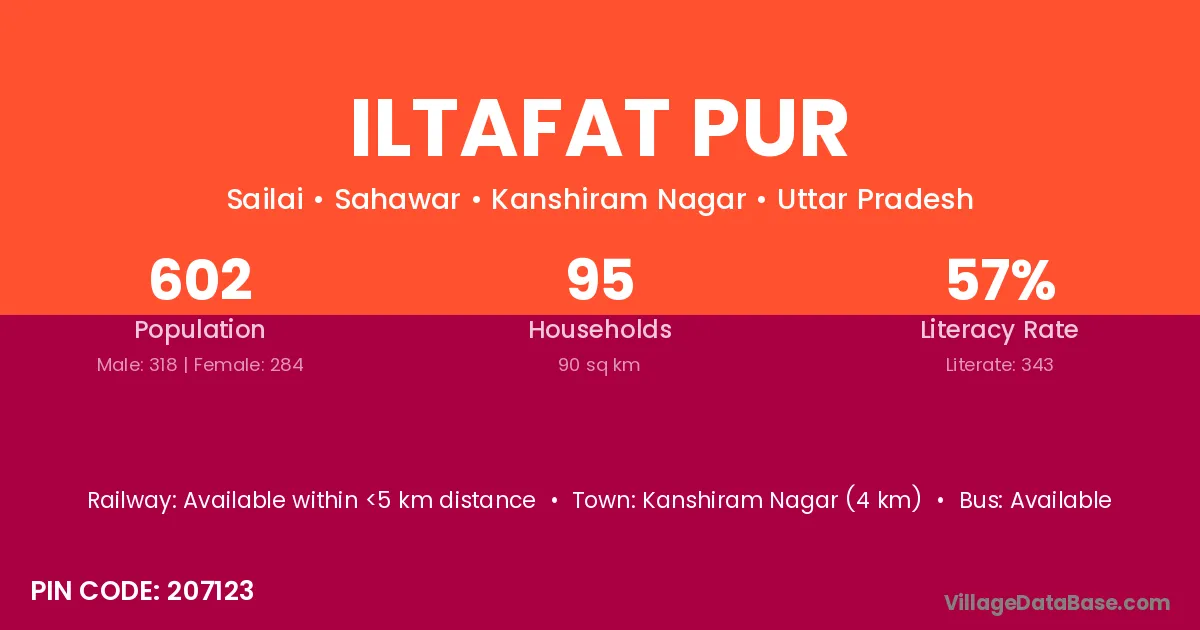 Kanshiram Nagar (4 km) is the nearest town to Iltafat Pur village for major economic activities and is located approximately 4 km away.