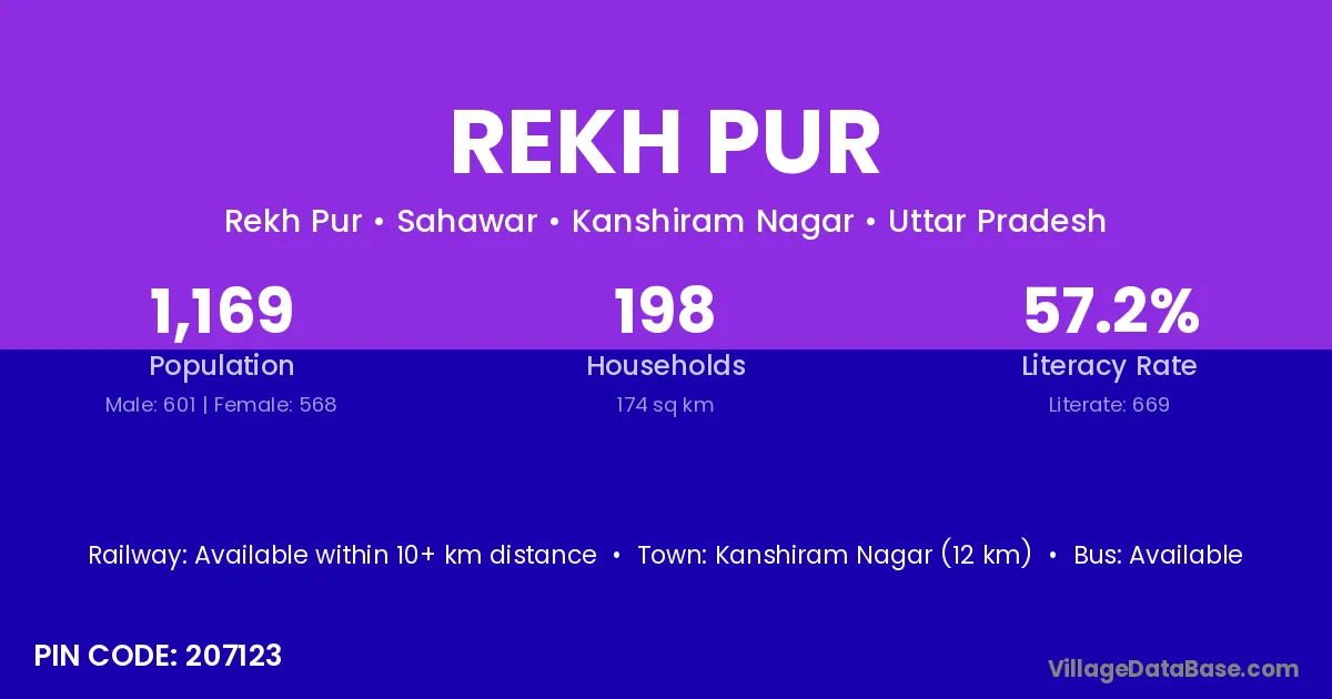 Kanshiram Nagar (12 km) is the nearest town to Rekh Pur village for major economic activities and is located approximately 12 km away.