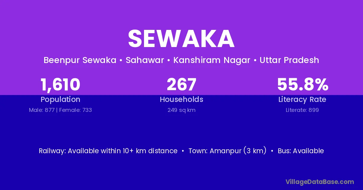 Amanpur (3 km) is the nearest town to Sewaka village for major economic activities and is located approximately 3 km away.