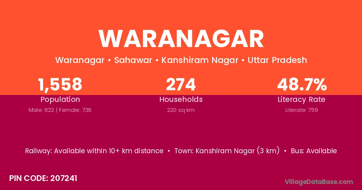 Kanshiram Nagar (3 km) is the nearest town to Waranagar village for major economic activities and is located approximately 3 km away.