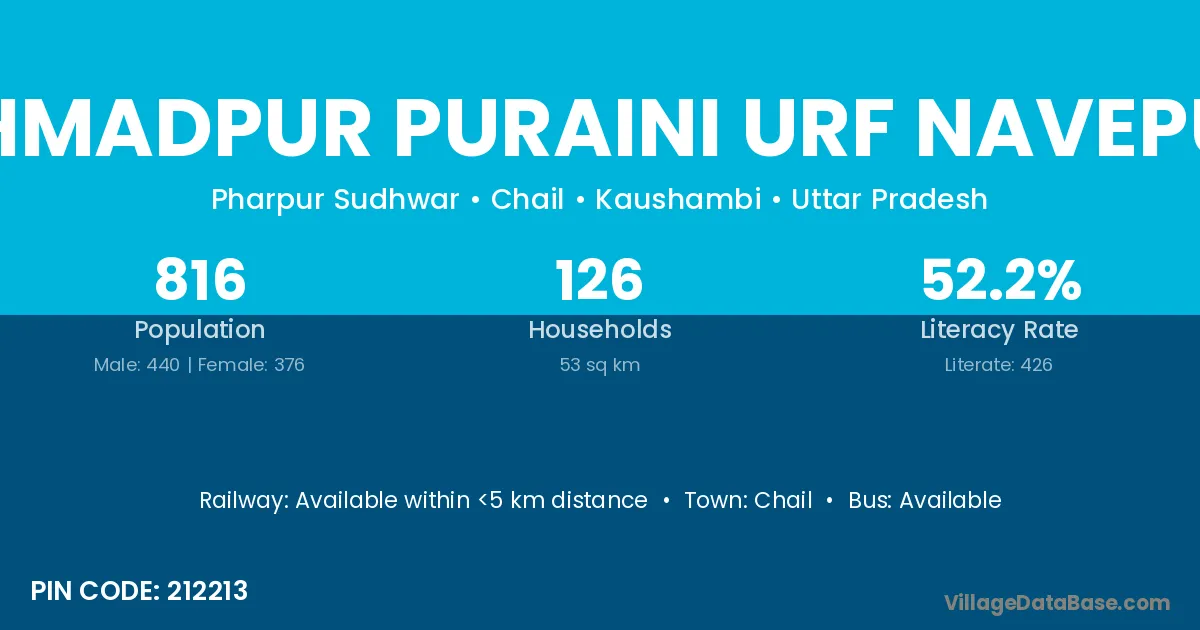 Ahmadpur Puraini Urf Navepur village has a total population of 816 people, of which 440 are males and 376 are females.