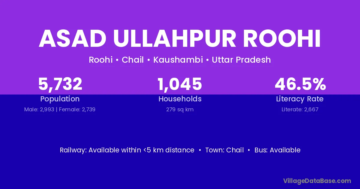 Asad Ullahpur Roohi village has a total population of 5,732 people, of which 2,993 are males and 2,739 are females.