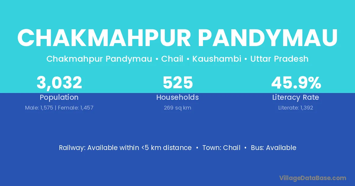 Chakmahpur Pandymau village has a total population of 3,032 people, of which 1,575 are males and 1,457 are females.