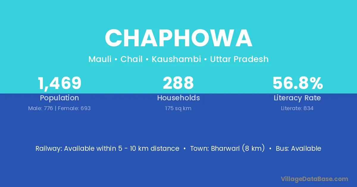 Bharwari (8 km) is the nearest town to Chaphowa village for major economic activities and is located approximately 8 km away.