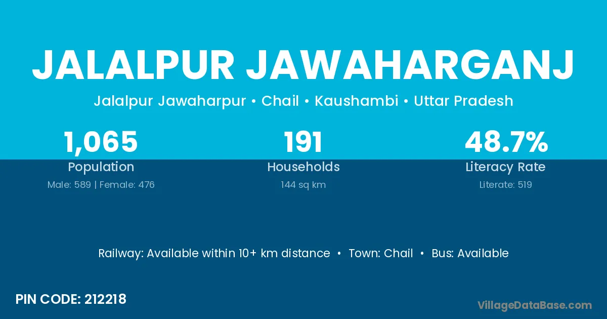 Jalalpur Jawaharganj village has a total population of 1,065 people, of which 589 are males and 476 are females.