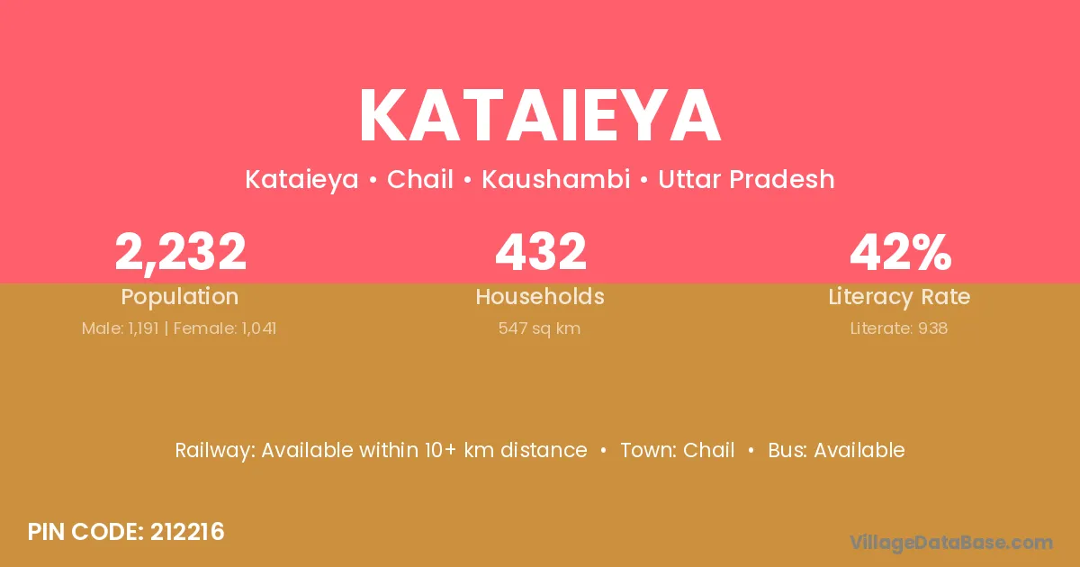 Kataieya village has a total population of 2,232 people, of which 1,191 are males and 1,041 are females.