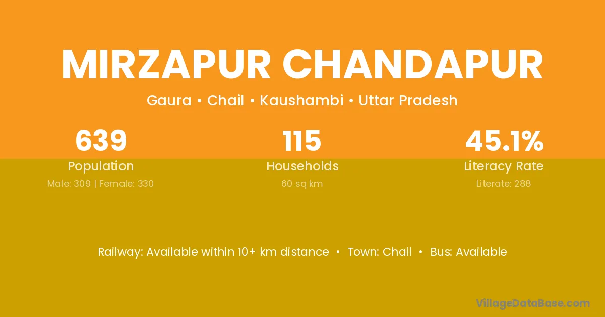 Mirzapur Chandapur village has a total population of 639 people, of which 309 are males and 330 are females.