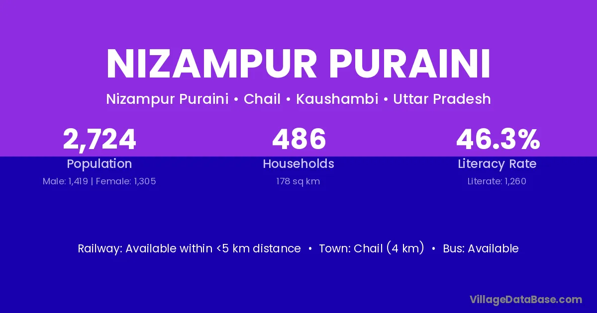 Nizampur Puraini village has a total population of 2,724 people, of which 1,419 are males and 1,305 are females.