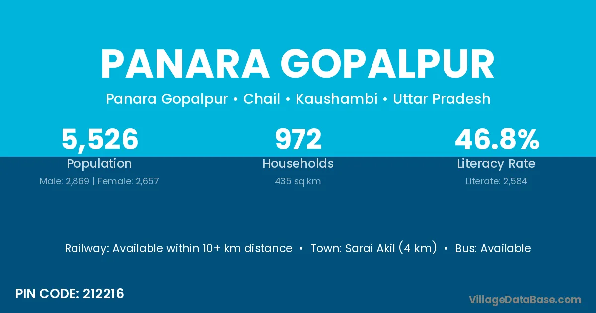Sarai Akil (4 km) is the nearest town to Panara Gopalpur village for major economic activities and is located approximately 4 km away.