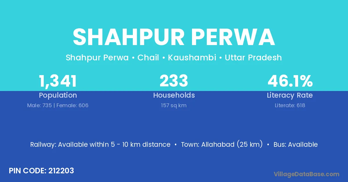 Allahabad (25 km) is the nearest town to Shahpur Perwa village for major economic activities and is located approximately 25 km away.