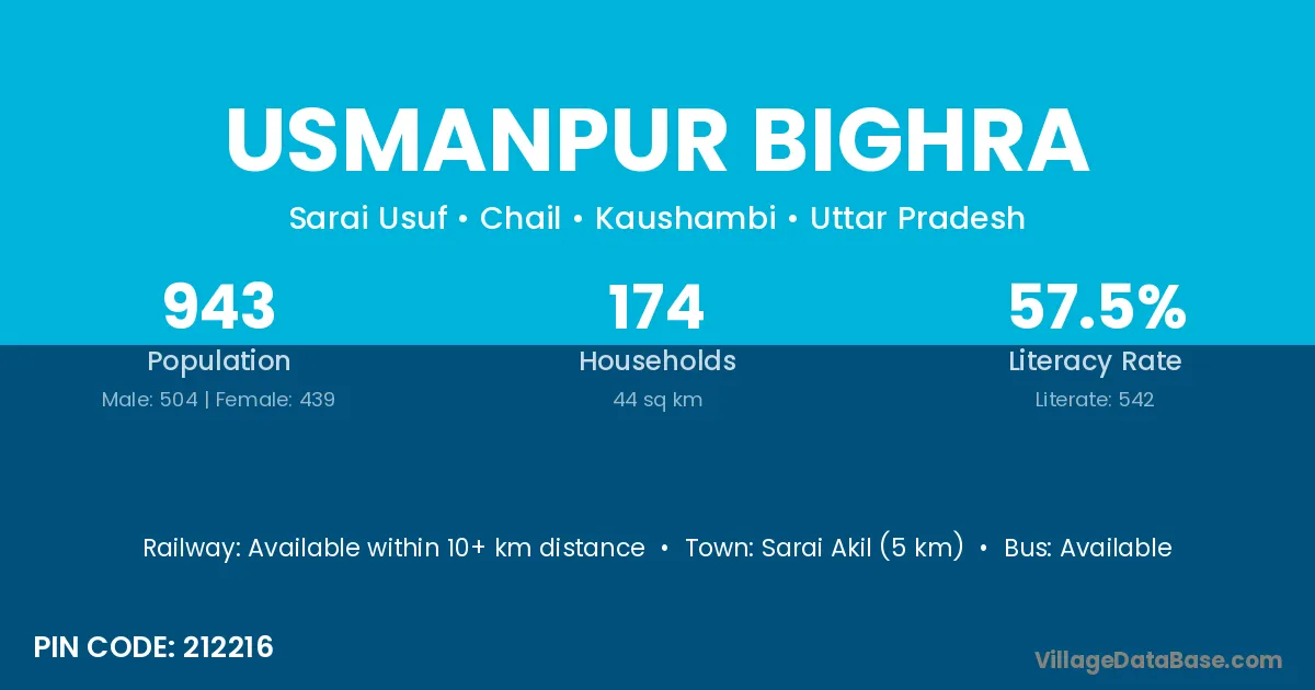 Sarai Akil (5 km) is the nearest town to Usmanpur Bighra village for major economic activities and is located approximately 5 km away.