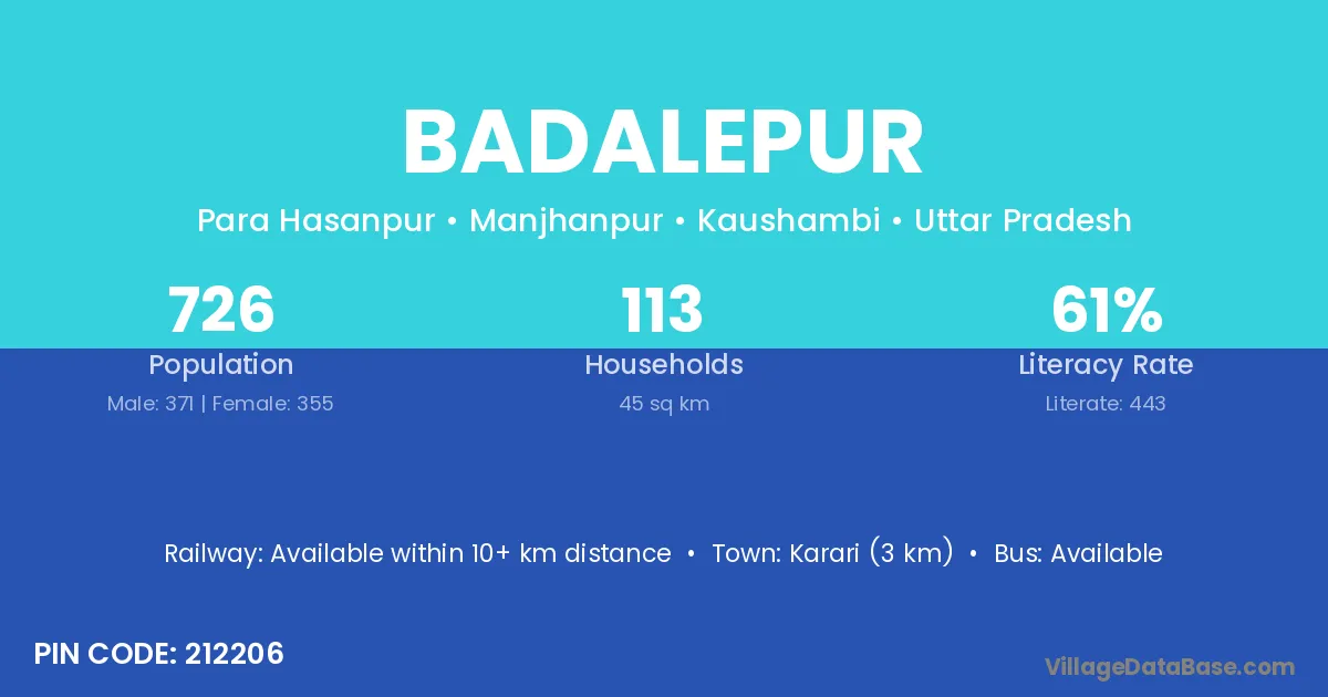 Karari (3 km) is the nearest town to Badalepur village for major economic activities and is located approximately 3 km away.