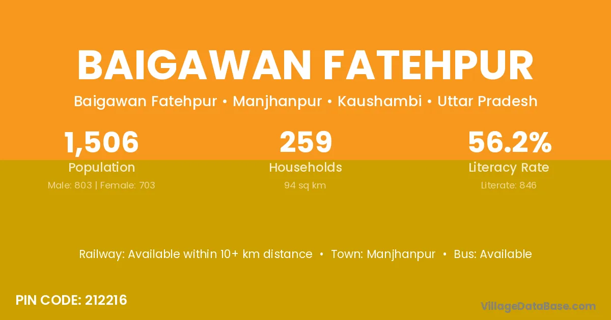 According to Census 2011 information, the village code of Baigawan Fatehpur village is 212216.