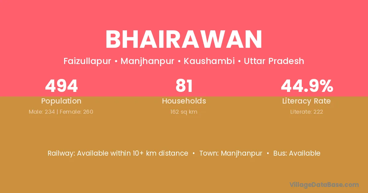 Manjhanpur is the nearest town to Bhairawan village for major economic activities