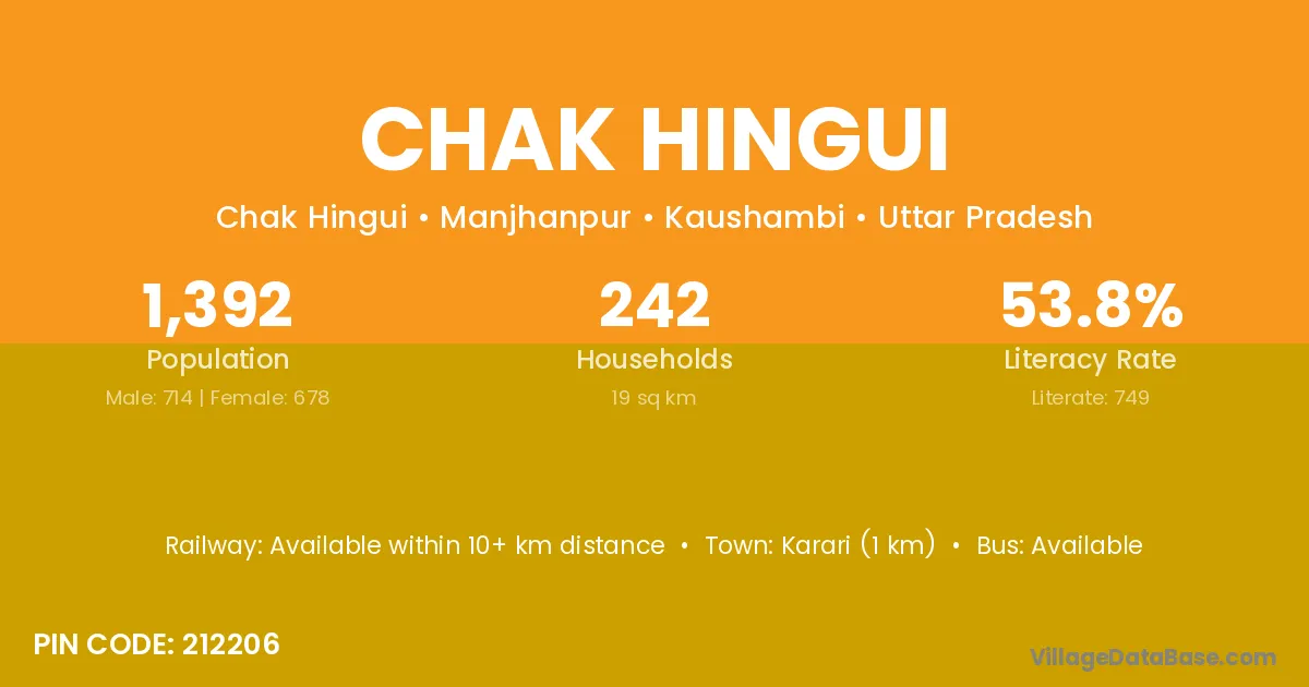 Karari (1 km) is the nearest town to Chak Hingui village for major economic activities and is located approximately 1 km away.