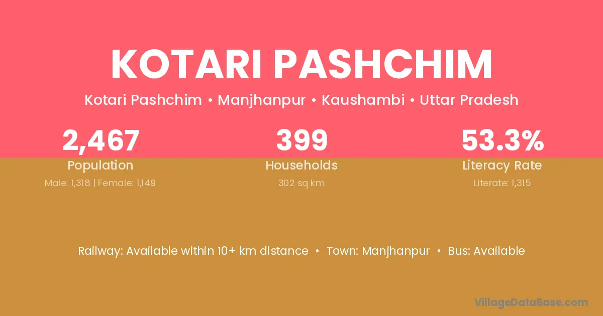 Kotari Pashchim village has a total population of 2,467 people, of which 1,318 are males and 1,149 are females.