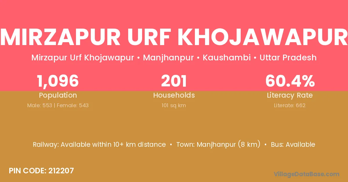 Mirzapur Urf Khojawapur village has a total population of 1,096 people, of which 553 are males and 543 are females.
