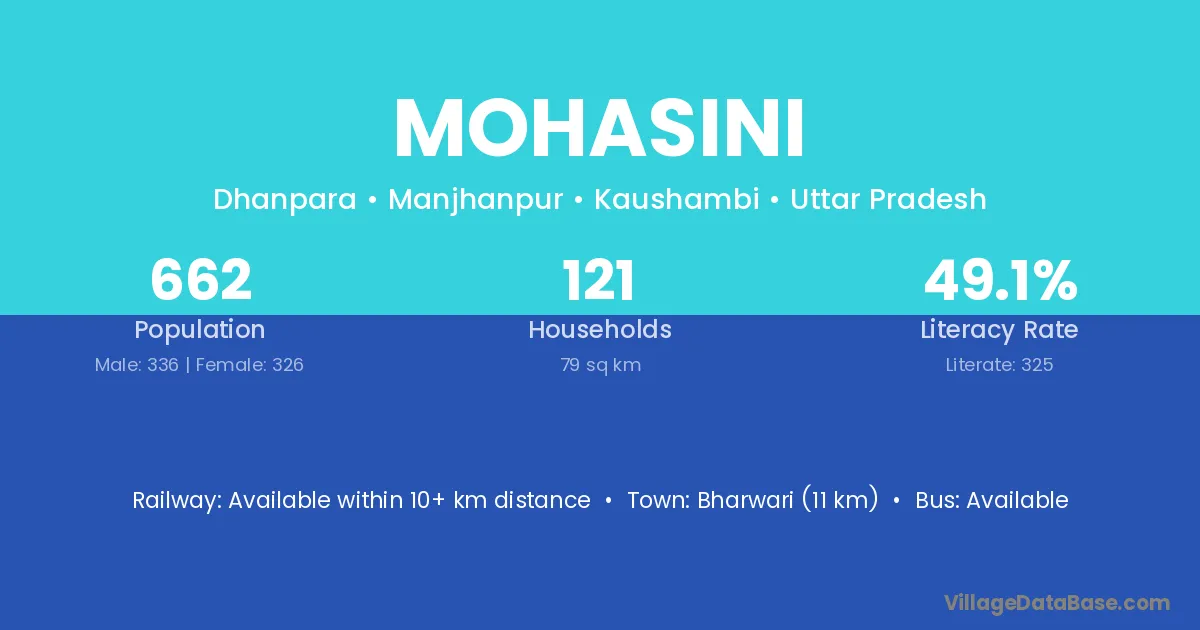 Bharwari (11 km) is the nearest town to Mohasini village for major economic activities and is located approximately 11 km away.